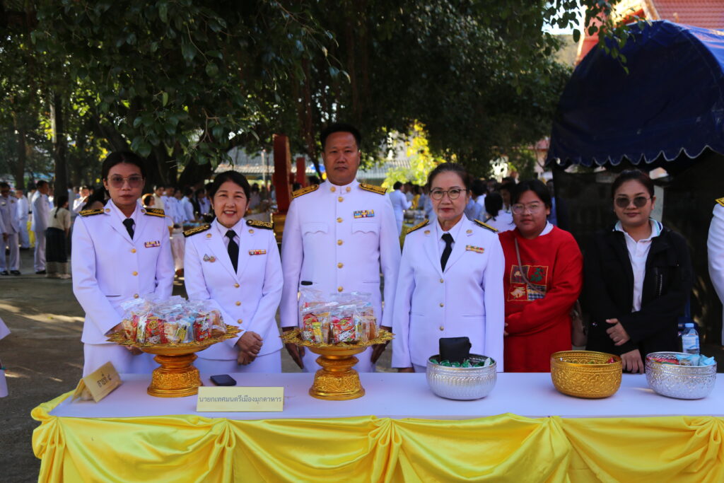 พิธีเจริญพระพุทธมนต์และทำบุญตักบาตรถวายพระราชกุศล การจัดกิจกรรมเฉลิมพระเกียรติพระบาทสมเด็จพระเจ้าอยู่หัว เนื่องในโอกาสพระราชพิธีสมมงคลพระชนมายุเท่าพระบาทสมเด็จพระพุทธยอดฟ้าจุฬาโลกมหาราชฯ วันที่ ๑๔ มกราคม ๒๕๖๘ เวลา ๐๗.๐๐ น. นางสุวรรณี ตั้งปณิธานนท์ นายกเทศมนตรีเมืองมุกดาหาร มอบหมายให้นางพชรวรรณ จันทรสาขา รองนายกเทศมนตรีเมืองมุกดาหาร พร้อมด้วยหัวหน้าฝ่าย/งาน พนักงานและเจ้าหน้าที่เทศบาล ร่วมพิธีเจริญพระพุทธมนต์และทำบุญตักบาตรถวายพระราชกุศล การจัดกิจกรรมเฉลิมพระเกียรติพระบาทสมเด็จพระเจ้าอยู่หัว เนื่องในโอกาสพระราชพิธีสมมงคลพระชนมายุเท่าพระบาทสมเด็จพระพุทธยอดฟ้าจุฬาโลกมหาราช สมเด็จพระปฐมกษัตริย์แห่งพระราชวงศ์จักรี ประจำปี ๒๕๖๘ ณ วัดศรีบุญเรือง ต.ศรีบุญเรือง อ.เมือง จ.มุกดาหาร